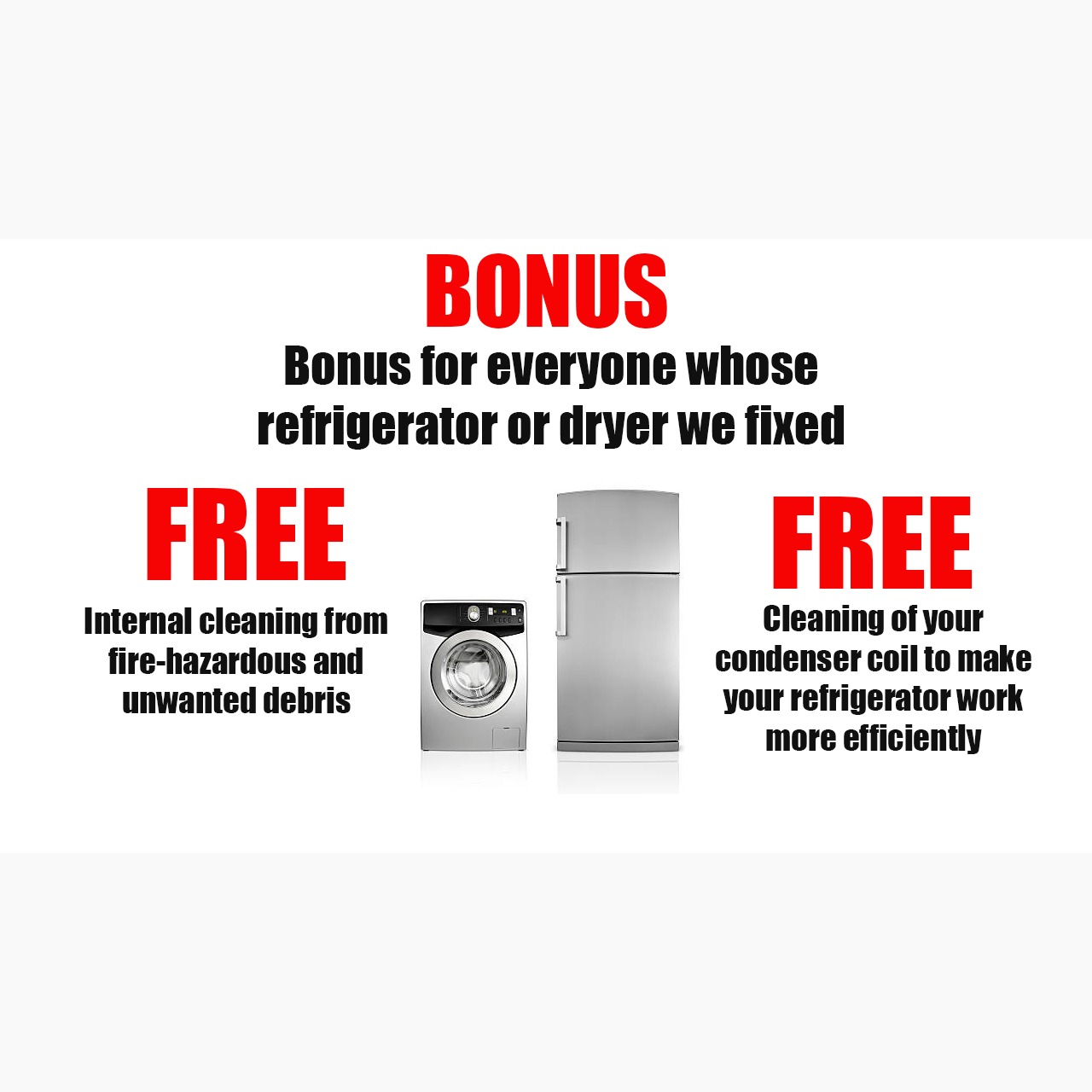 I offer efficient repair services for washers, dryers, refrigerators, stoves, dishwashers, and HVAC systems, ensuring all your appliances function perfectly and keep your home comfortable throughout the year.